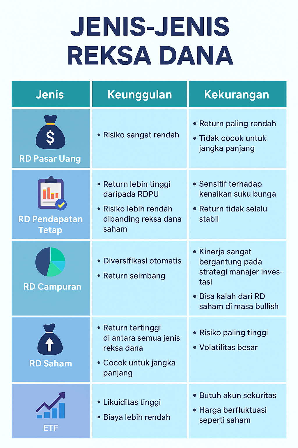 - RD Pasar Uang → Risiko rendah, cocok jangka pendek