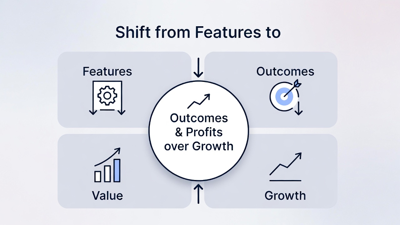 Berikut sumber-sumber kredibel yang mendukung pembahasan outcomes over outputs, shift from features to outcomes, dan profits over growth di product management tahun 2026:
